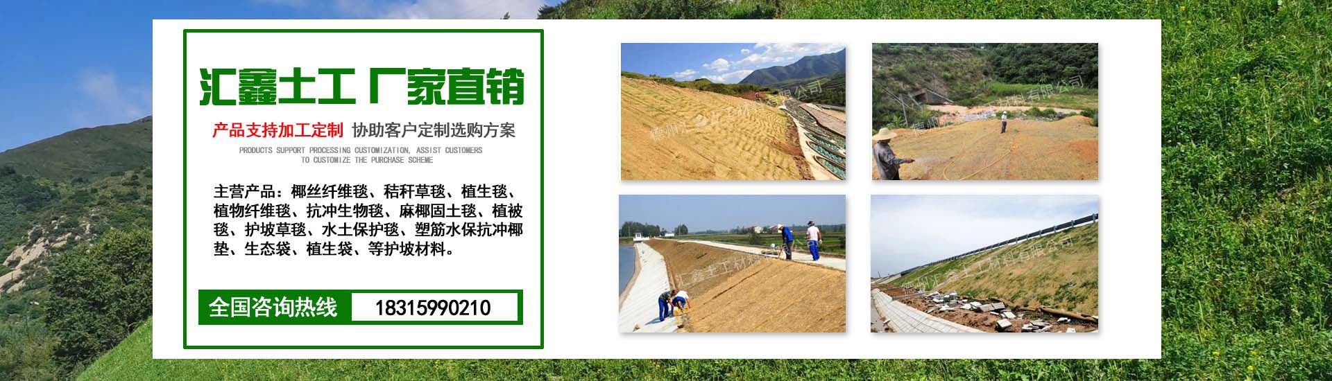 德州匯鑫土工材料有限公司是一家專業生態護坡產品、技術服務及施工為一體的綜合性企業。公司主要生產銷售植物纖維毯、植生毯、椰絲毯、抗沖生物毯、生態毯、秸稈纖維毯、麻椰固土毯、塑筋水??箾_椰墊、生態袋、植生袋等各種護坡材料,產品廣泛應用于:高速公路邊坡綠化、山體邊坡綠化護坡、河道邊坡、人工湖邊坡防護及其他生態邊坡治理等工程。經廣大工程單位使用證明,產品質優價廉,施工方便,售后服務好,得到廣大客戶的一致好評。 "為客戶提供優質產品及服務"的宗旨, 熱誠希望攜手各界朋友,共鑄造彼此輝煌。 ...